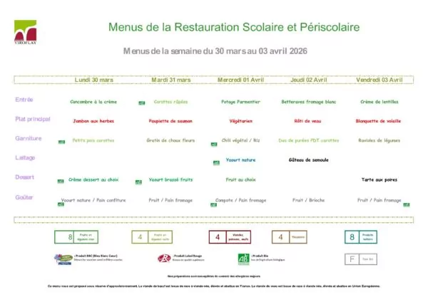 Menus de la restauration scolaire